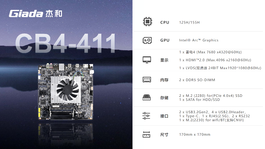 CB4-411是米兰·(milantiyu)科技首款AI一体机主板,拥有34TOPS算力,该主板基于英特尔Meteor Lake平台,以极高的性能和超高清显示,为用户带来属于一体机主板方案的AI时刻。