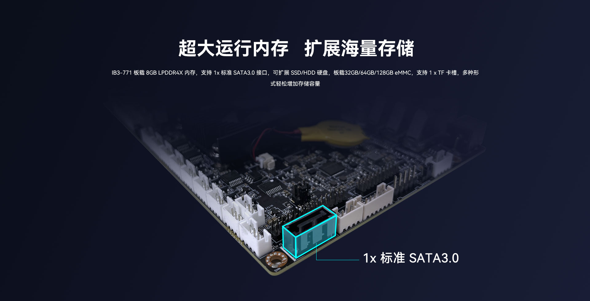 板载 HDMI、USB3.0、RS232 等全接口,直接连接各类外设,支持 SSD/TF 卡扩容存储交易数据,预留 Mini PCIe 扩展位方便后期升级。