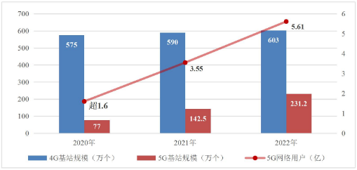 从报告数据来看,截至2022年底,累计建成开通5G基站231.2万个,5G用户达5.61亿户,全球占比均超过60%。移动物联网终端用户数达到18.45亿户,成为全球主要经济体中首个实现“物超人”的国家。而“物超人”,简而言之就是连接物的数量超过了连接人的数量。“物超人”意味着移动网络从服务人和信息消费,进一步发展到服务千行百业,“万物互联”的愿景正逐步成为现实。