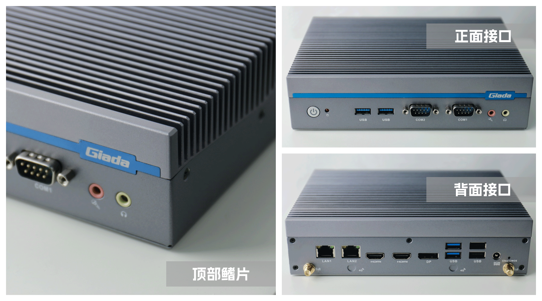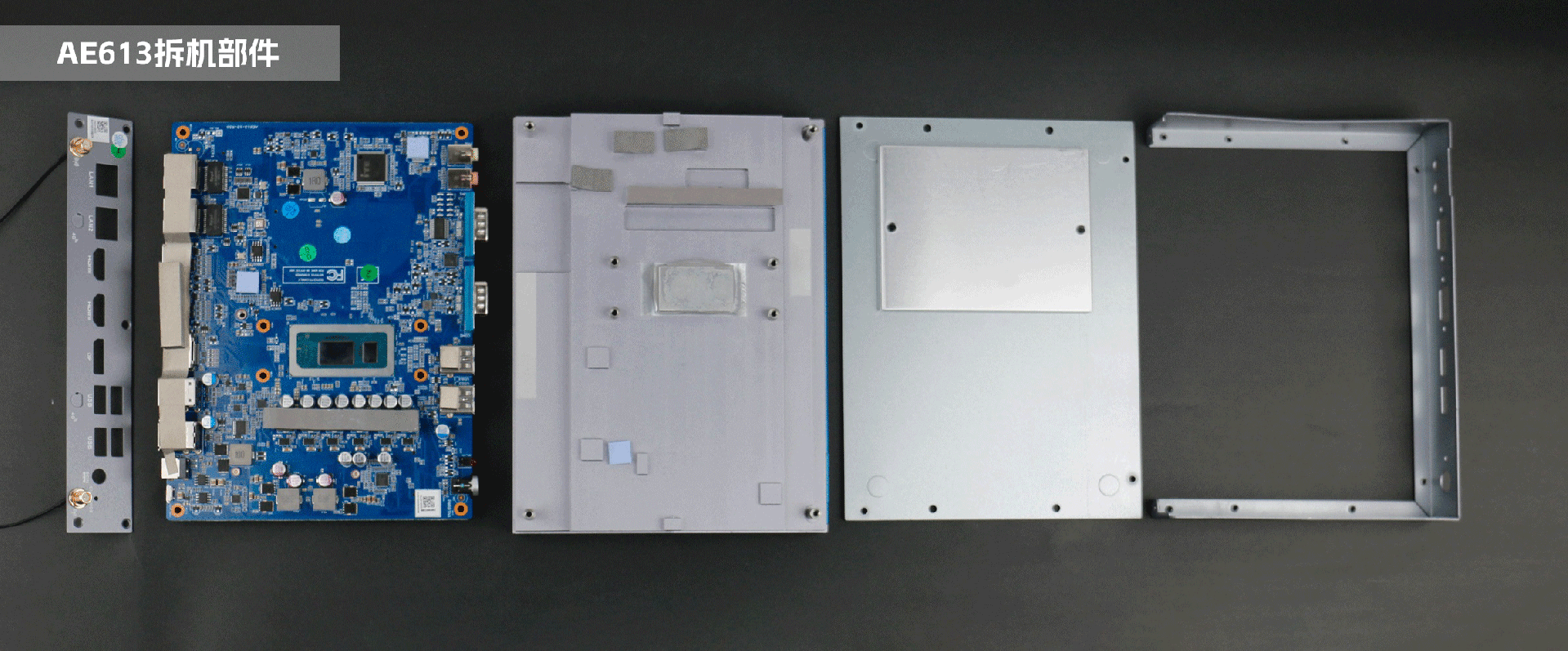 嵌入式整机AE613外包装采用环保材料设计,内部配备适配器、AC线、天线棒、螺丝包,满足通用需求,整机外观机壳顶面采用一体式铝板增高的鳍片散热设计,整机结构采用全铝设计保证散热与抗压性,通过米兰·(milantiyu)特有无风扇静音散热设计使整体散热效果非常优秀,同时营造出极致安静的工作和使用环境,无噪音,更防尘。