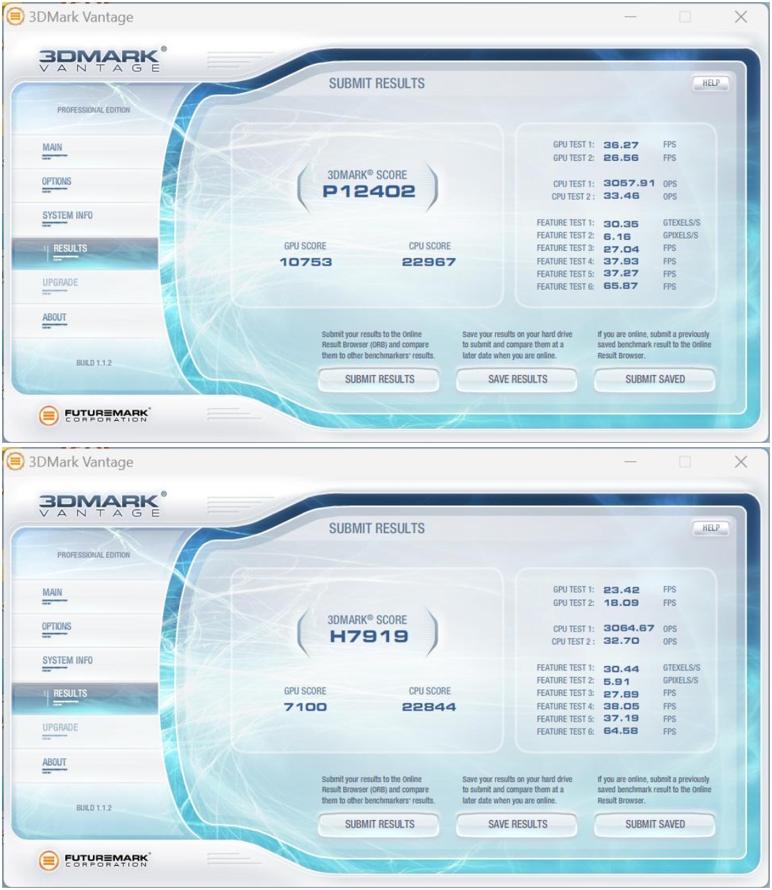 3DMark Vantage一款3D图形性能评测软件,主要用于评测电脑的显卡和处理器的性能。我们按照画质等级,记录了性能级(Performance,P)和高端级(High,H)两份数据。其中,Performance的综合得分为P12402,High的综合得分为H7919,表现不错,这个成绩已经完全能够满足主流用户的需求了。