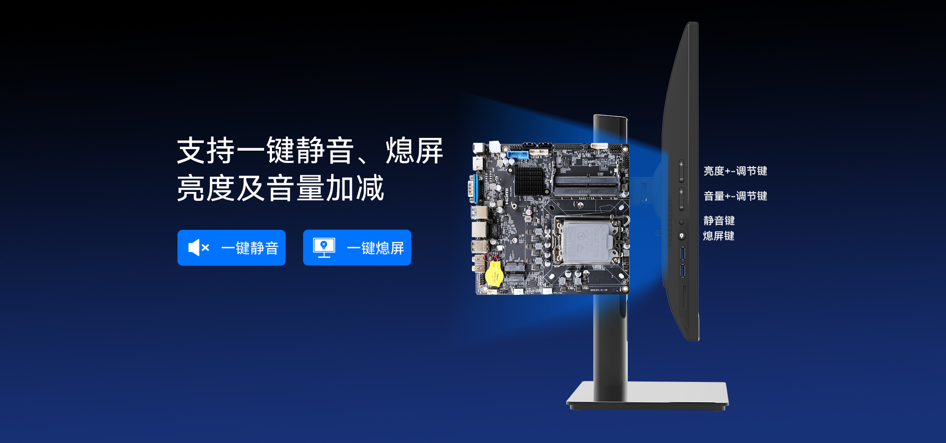 支持一键静音、一键熄屏、音量加减、亮度加减