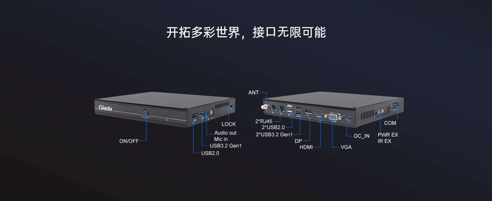 支持2x RJ45,1x 全高Mini-PCIe扩展WiFi/BT/3G/4G,1x SIM卡槽